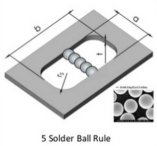 有一個'5球規(guī)則',理想情況下最少5個焊料粒子應該跨越最小孔徑的寬度。