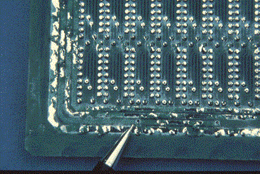 圖1顯示了焊接后從電路板表面抬起抗蝕劑的一個(gè)非常明顯的例子。 很簡單,這是由于不正確的印制板規(guī)格。 錫/鉛不應(yīng)用于專業(yè)電路板上的抗蝕劑下。 當(dāng)錫/鉛進(jìn)入液相時(shí),它會膨脹并可能導(dǎo)致焊料和抗蝕劑之間的粘附力喪失。 如果抗蝕劑脆或薄,它將如圖1所示分開。如果涂層的厚度小于3-5μm,則可以使用錫/鉛,因?yàn)樵诓ǚ搴富蚧亓骱笗r(shí)會有非常小的移動。