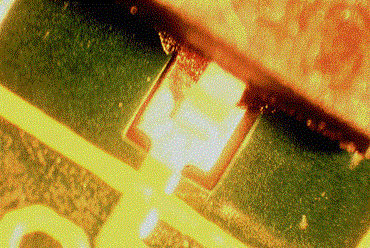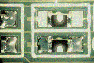 圖2:焊盤表面的粘合劑污染導(dǎo)致這種焊錫跳躍。