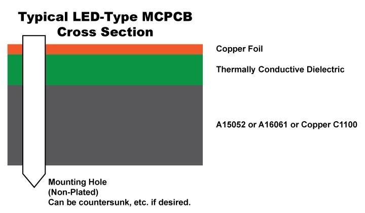 根據(jù)標準PCB工藝制造的2層或更多層板,但使用熱介電材料代替FR4,并將金屬背板層壓到底部進行熱傳遞。